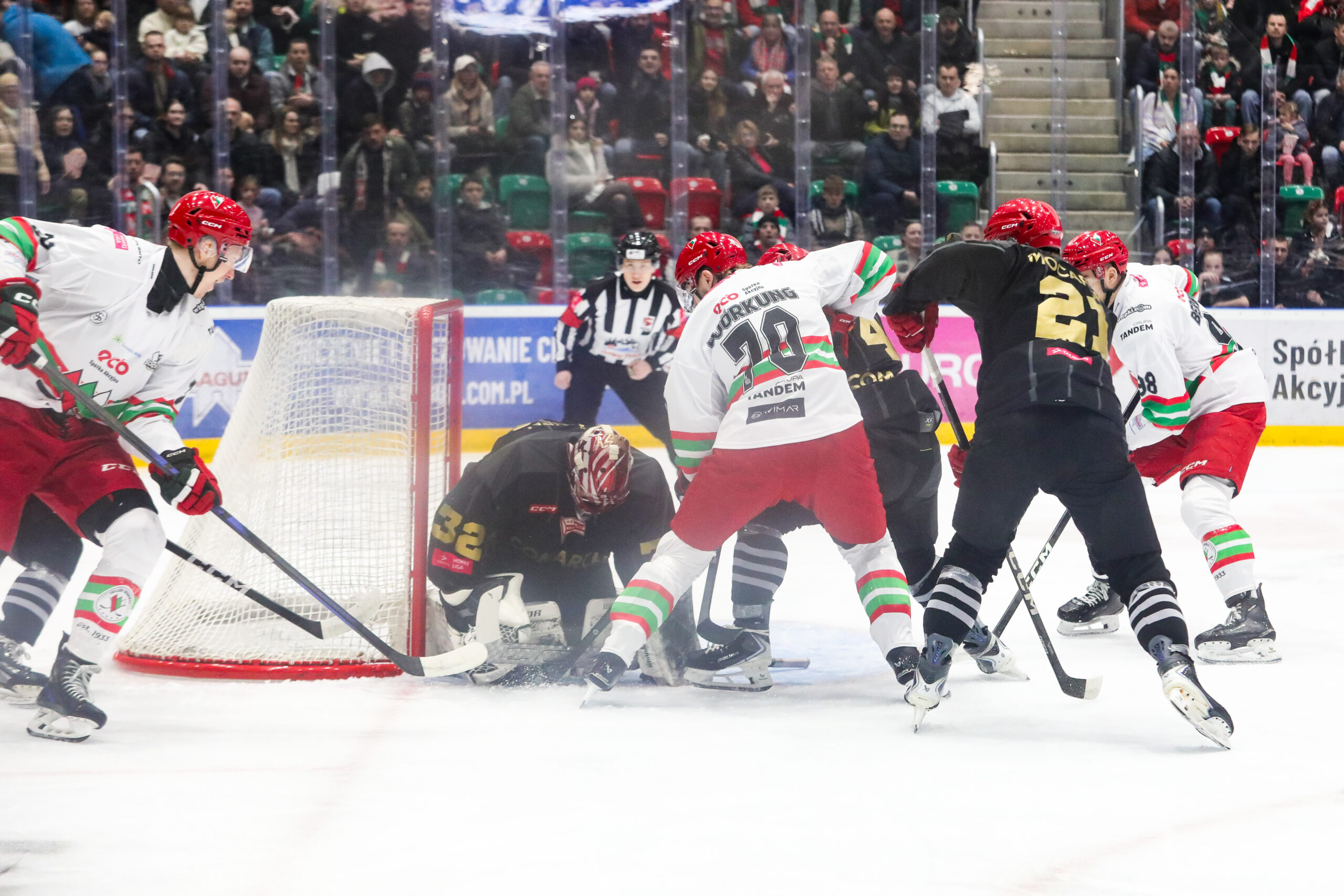 Druga tercja miała podobny przebieg do premierowej z tą różnicą, że komplet sosnowieckiej publiczności w końcu zobaczył gola w wykonaniu swoich ulubieńców. Pod bramką rywala bardzo dobrze zachował się Jakub Wanacki, który wyciągnął bramkarza przyjezdnych i skierował krążek przy słupku.