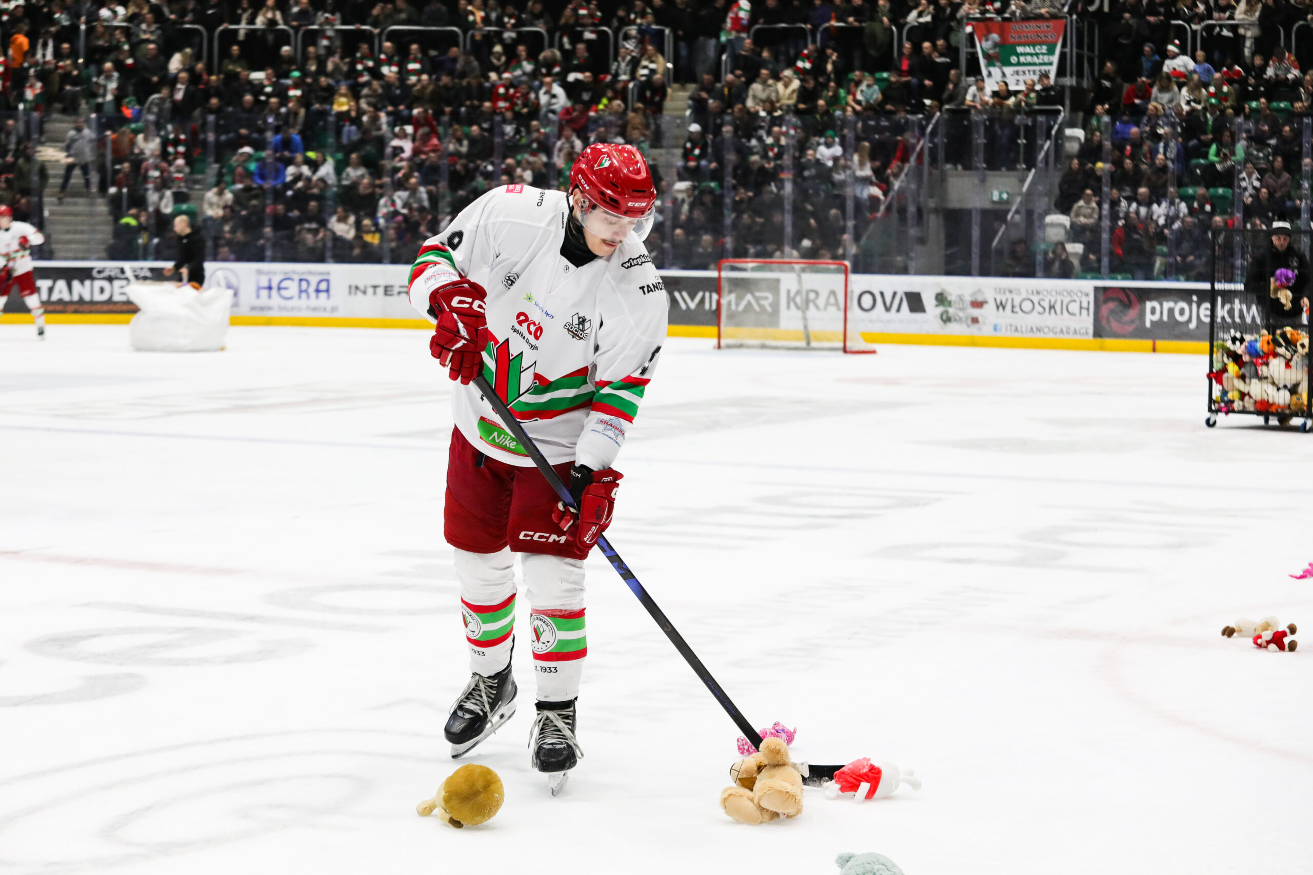 Pierwsze minuty dzisiejszego meczu to aktywna gra podopiecznych Matiasa Lehtonena, lecz żadna z prób nie wpłynęła na zmianę rezultatu. Aktywny był Jere-Matias Alanen oraz Victor Björkung jednak obie próby padły łupem bramkarza przyjezdnych. W 10 minucie spotkania zakotłowało się pod bramką „Pasów” i krążek ostatecznie przekroczył linię bramkową jednak według sędziów stało się to już po gwizdku. To nie powstrzymało już lawiny miśków i pluszaków, które wylądowały na tafli „Stadionu Zimowego”. Po wznowieniu aktywni sosnowiczanie nie znaleźli sposobu na pokonanie Santeri Lipiäinena.