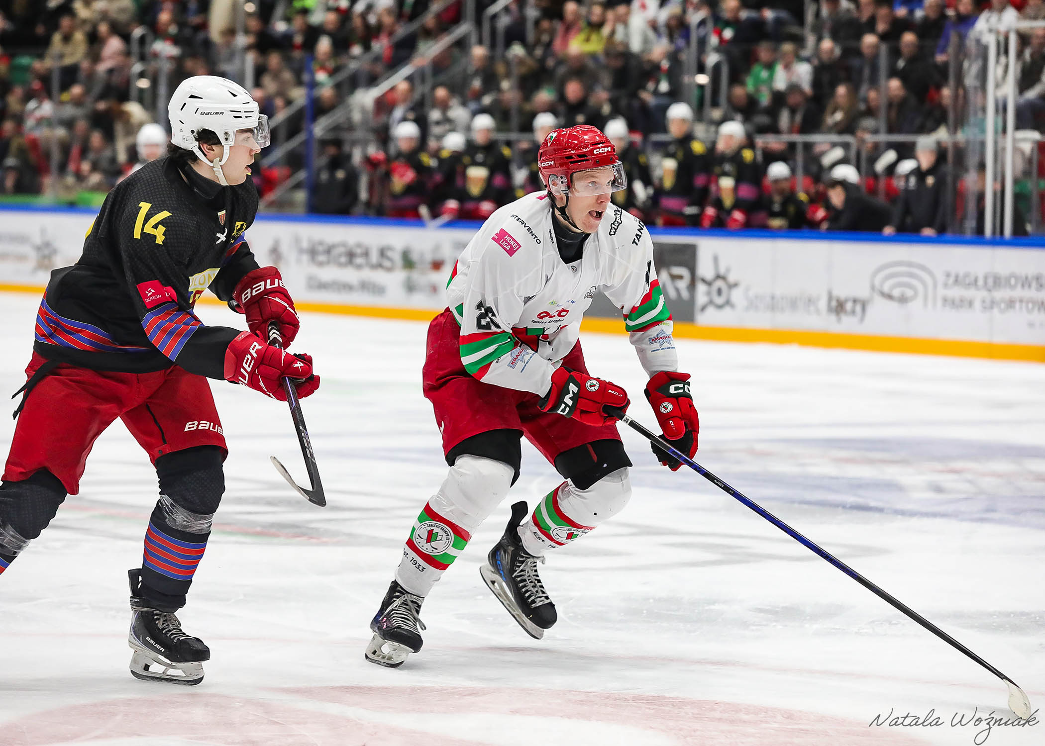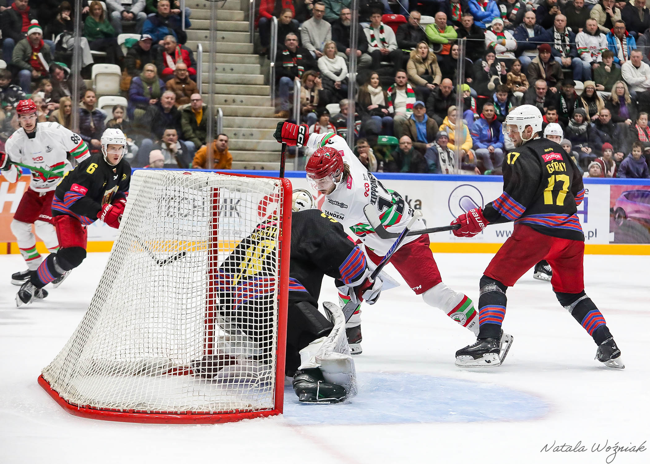 Na początku drugiej tercji sosnowiczanie wyszli na prowadzenie za sprawą Jere-Matiasa Alanena, który z bliska wpakował krążek pod poprzeczkę. Kolejne minuty to wyrównana gra z akcjami po obu stronach. W połowie tercji goście stanęli przed ogromną szansą doprowadzenia do wyrównania grając przez ponad półtorej minuty w podwójnej przewadze. Dobra postawa naszej drużyny sprawiła jednak, że wynik nie uległ zmianie. Bliski szczęścia był Radosław Sawicki jednak trafił wprost w naszego bramkarza.