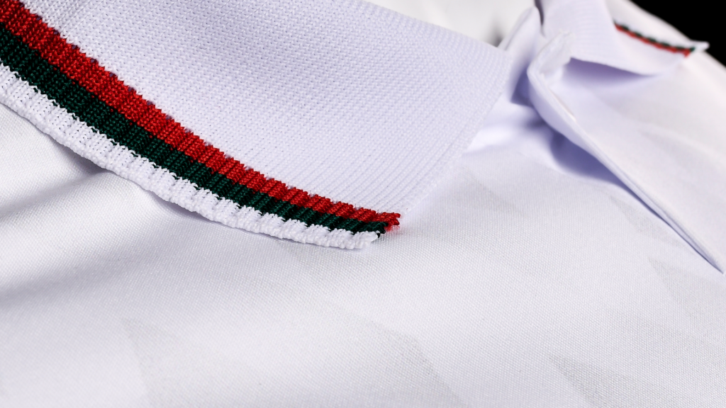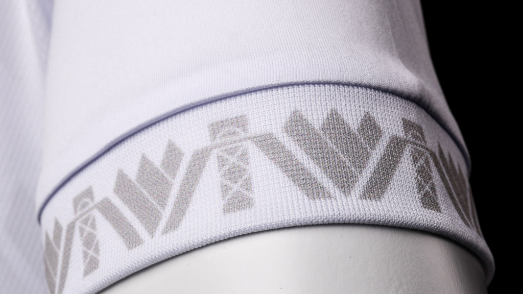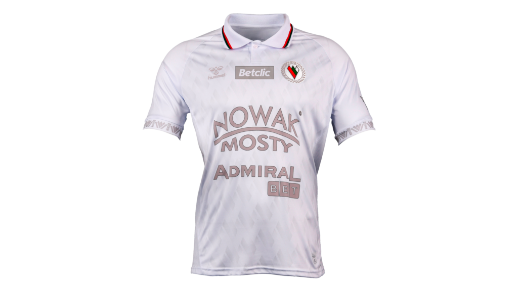 Całość domyka biały kołnierz z trójkolorowym wykończeniem – dumnie prezentujący barwy klubu oraz regionu.