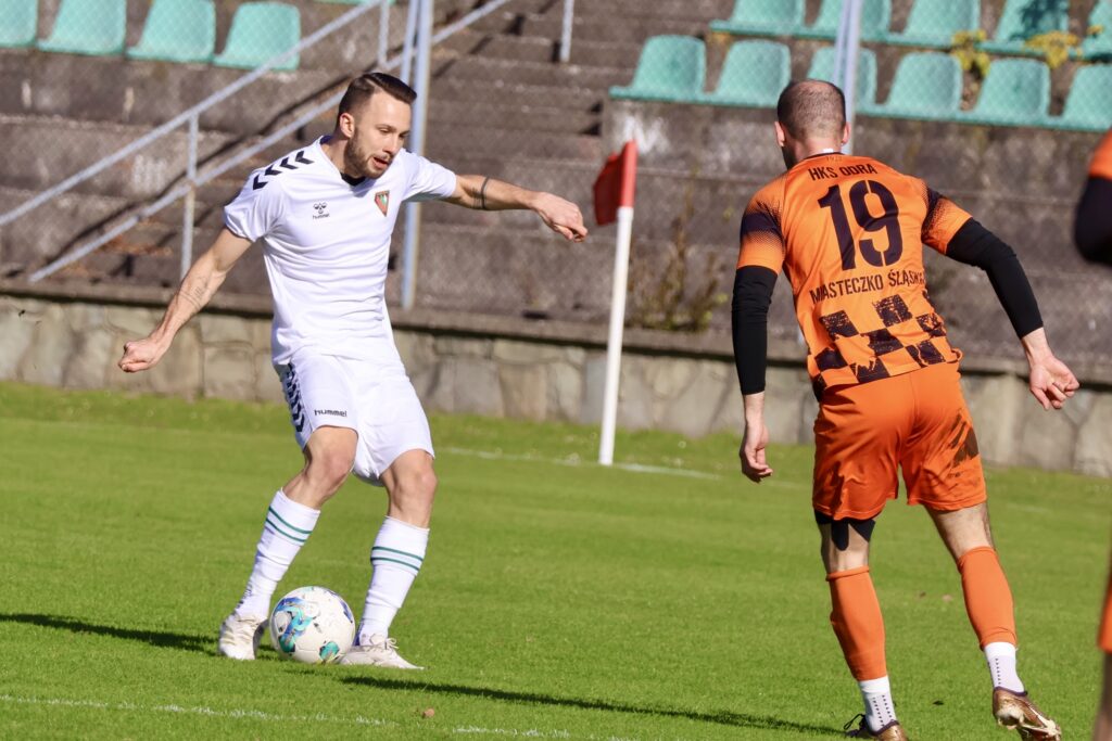 Popis strzelecki Sosnowiczan rozpoczął Michał Barć, który już w 4 minucie trafił do siatki. To było jedenaste trafienie Michała w rozgrywkach V ligi śląskiej. Pierwsza odsłona zakończyła się wysokim prowadzeniem naszej drużyny w stosunku 4:0, a dwa trafienia należały do Kacpra Wołowca. Dla naszego kapitana były to gole nr 9 i 10 uzyskane w lidze. Najbardziej efektowną bramką popisał się jednak Patryk Mucha, który kropnął z odległości około 25 metrów, trafiając idealnie w sam róg bramki Odry. Mateusz Harkawy, golkiper gości, nie miał żadnych szans na skuteczną interwencję.