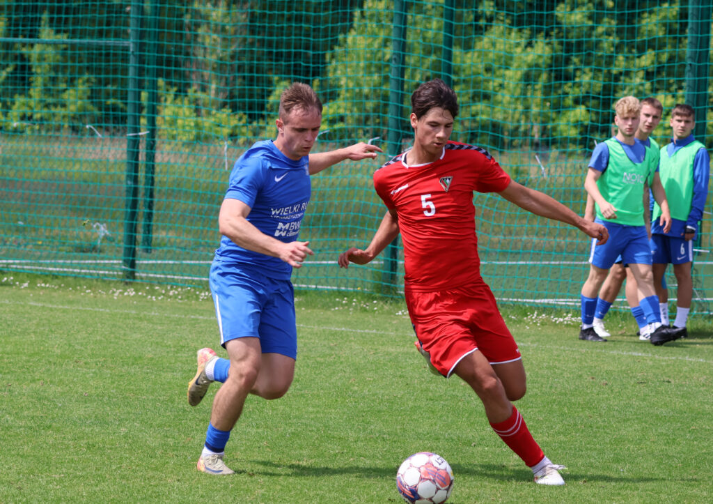 Ale po kolei – pierwsza trafienie padło w efekcie rzutu karnego podyktowanego za faul na Igorze Gaszewskim. Szymon Celej mocnym uderzeniem z 11 metrów trafił do siatki i nasi chłopcy poczuli wiatr w plecy. W 70. minucie po efektownej akcji w polu karnym gości Łukasz Uchnast mógł podwyższyć to prowadzenie, jednak z bliskiej odległości trafił w boczną siatkę.