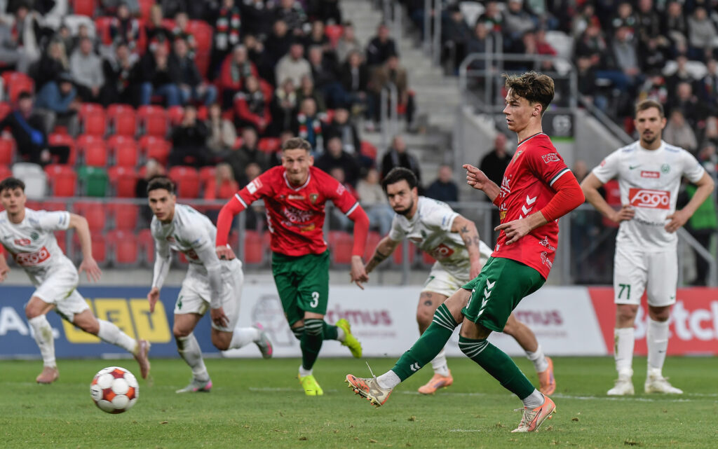 38′ Marcel Broniewski znalazł się w idealnej sytuacji do zdobycia gola, ale jego silne uderzenie w polu karnym zablokował jeden z obrońców rywali.