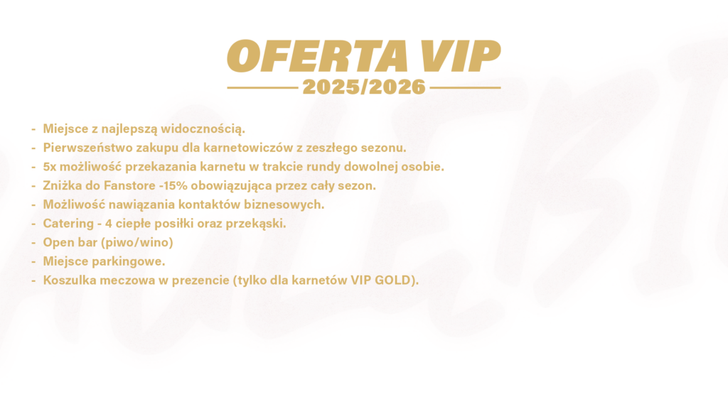 – koszulka meczowa w prezencie (tylko dla karnetów VIP GOLD).
